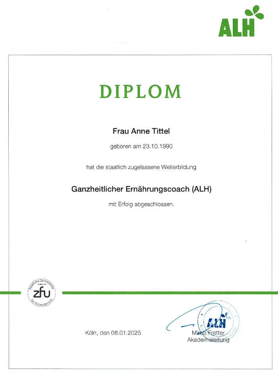 Besonders beeindruckt hat mich ihre individuelle Herangehensweise. Sie hat sich die Zeit genommen, um meine persönlichen Vorlieben und Bedürfnisse zu verstehen, und hat mir maßgeschneiderte Tipps gegeben, die wirklich funktionieren. Dank ihrer Unterstützung habe ich nicht nur mein Wohlbefinden verbessert, sondern auch ein neues Bewusstsein für meine Ernährung entwickelt.